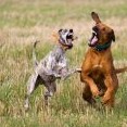 Náš akční podzim je ve znamení každodenních vycházek, na kterých nám střídavě dělá společnost FanTým nebo Clouďáci Tafari s Ryannkem, a víkendových výletů s SVP. Stihly jsem i Mistrovství České republiky v coursingu, kde jsme, po téměř roční pauze, obstály se ctí : Mellory si vyběhala úžasné druhé místo ( po jejích mateřských povinostech je to pro nás fakt velkých úspěch ) a Berllyna skončila těsně pod bednou na místě čtvrtém. Velká gratulace letí k FanTýmu, protože Týnka smázla všechny své soupeře a získala ZLATO ! V sobotu jsme si ještě zajely do Českých Budějovic na výstavu, kterou posuzoval pan rozhodčí F. Zimmermann (A). Společnost nám dělala naše " áčka " Angee a Adam. Mellory získala ve třídě šampionů V2, res.CAC, Berllyna ve třídě otevřené známku Výborná a Angee s Adámkem ve stejné třídě známku Velmi dobrá. Na výstavách už září i naše vnoučátka : Dakarai Django - AKC Chesapeake Virgina BOB puppy a Damira Dayo - CAC Taganrog (RUS) Velmi nadějná, Best Baby a BIS baby 2. Posíláme velké gratulace ! Na cvičáku se pravidelně vídáme s našimi Clouďáky, kteří jsou moc šikovní a pěkně prospívají ( 3 x klepu do dřeva ).